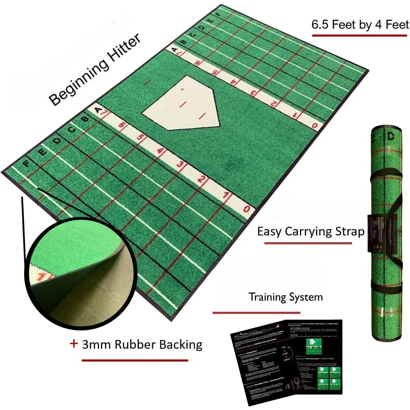 Enhance your hitting technique with this Dual-Purpose Baseball and Softball Batting Mat, designed to improve stance, stride, and swing mechanics. Perfect for both instruction and independent practice, it provides clear guidance for proper foot placement and body alignment. The durable, non-slip surface ensures stability during swings, while protecting floors or turf from wear. Ideal for players of all skill levels, this mat allows consistent practice of swing mechanics, helping build muscle memory and confidence at the plate. Lightweight and portable, it can be used indoors or outdoors, making it versatile for home, school, or training facility use. Whether refining your hitting form, teaching fundamentals, or improving overall swing efficiency, this mat is an essential training aid for serious baseball and softball players.